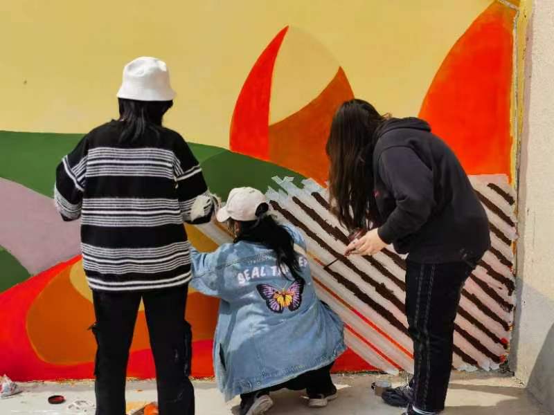 今日艺术教院大众艺术教导部李波传授、大众艺术熏陶部教工党收部刘洋、刘梁、刘东3实党员老师指挥12逻辑学死长远蓟州区停仓镇年夜恩庄,经由过程本身的绘笔画便新乡下扶植的转变,用墙体彩画的体例帮力奇丽村落扶植。