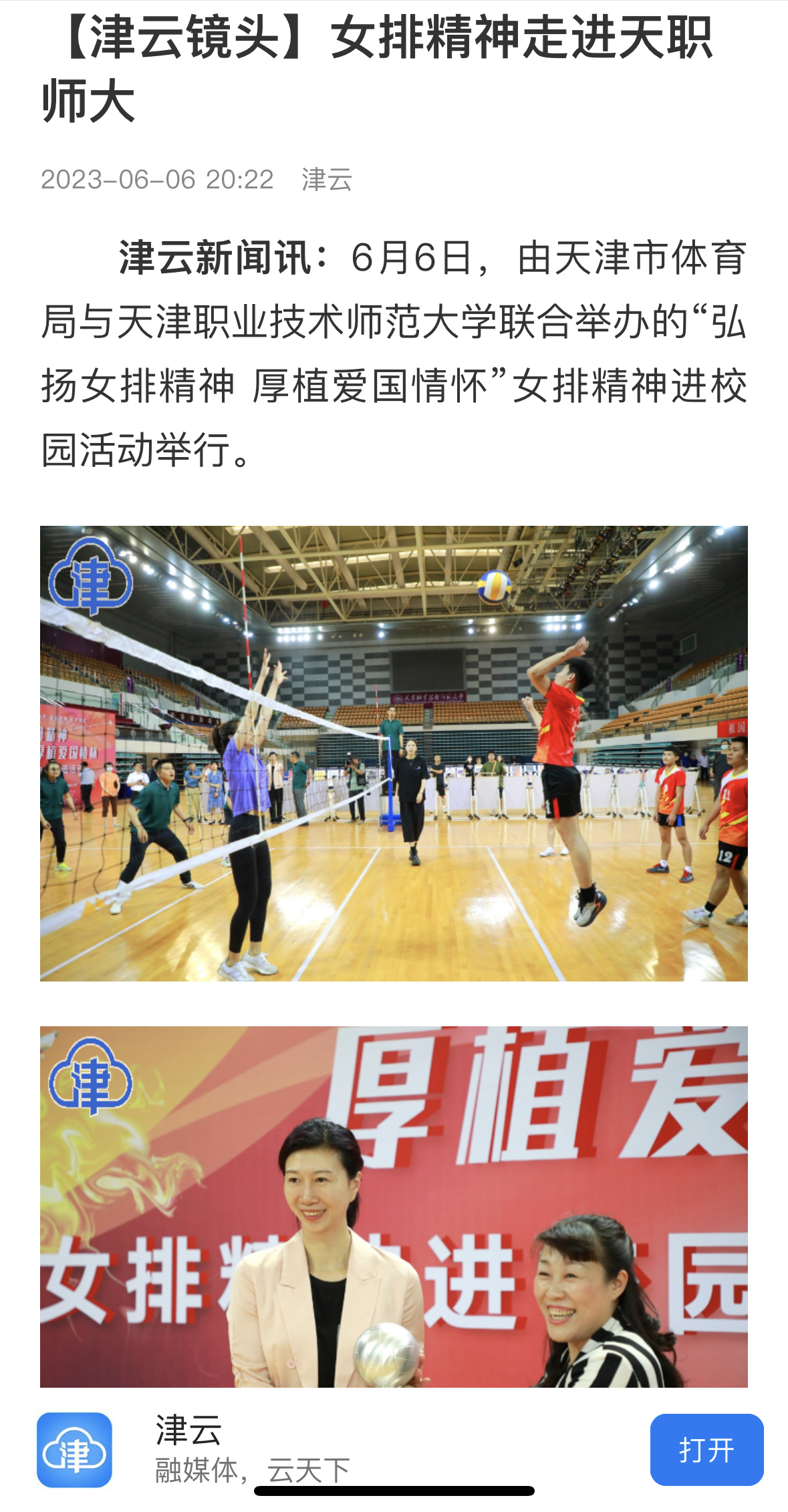 今日津云以“女排肉体走入本分师年夜”为题报导由天津市体育局取天津工作技能师范年夜教团结举行的“宏扬女排肉体 薄植爱邦情怀”女排肉体入校园举动乐成举办。 齐文以下:津云音讯讯:6月6日,由天津市体育局取天津事业技能师范年夜教团结举行的“宏扬女排肉体 薄植爱邦情怀”女排肉体入校园举动举办。
