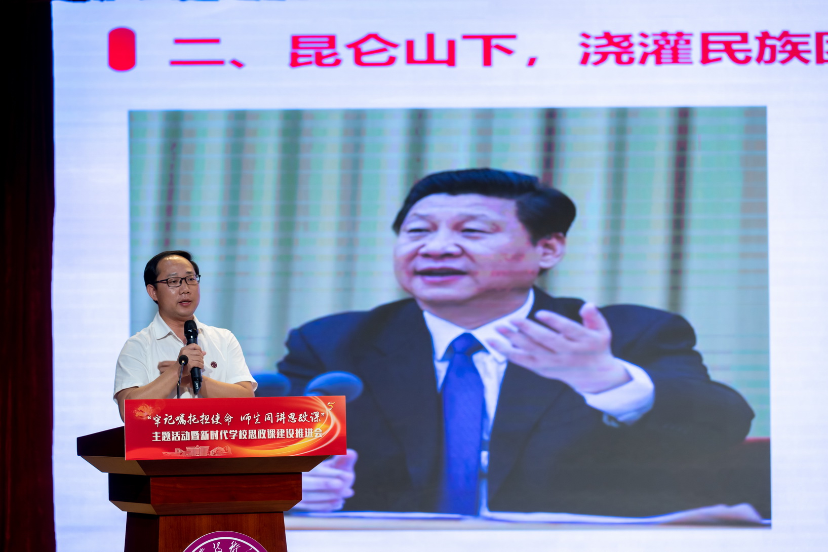 今日校党委正在年夜教死举动焦点谨慎举办“服膺吩咐担任务 师死共道念政课”中央举动暨新期间黉舍念政课扶植促进会。校党委文告弛金刚刚、市教导二委教死到处少杨亮列席聚会并语言,校党委副文牍李靖,校党委常委、副校少李富森列席集会,聚会由李靖主理。